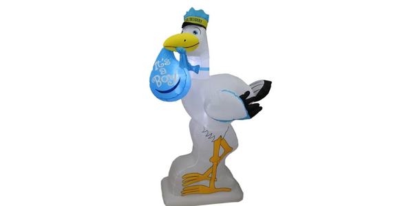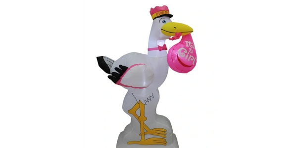 6 Foot Tall Baby Shower Inflatable Blue Stork It's a Girl Special Delivery